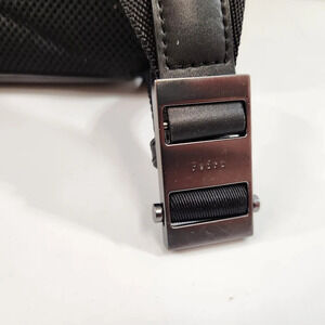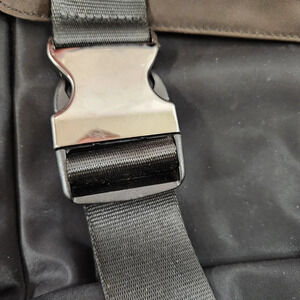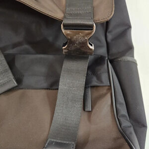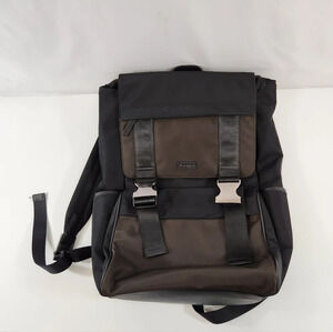 black Pedro backpack in good condition, has some scuffs on the clip buckles and is missing one clip, otherwise like new. Color is black and dark brown. No material tag but seems to be made from nylon.