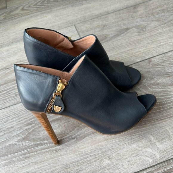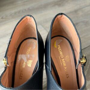 Pedro Miralles Navy Smooth Leather Open Toe Heeled Bootie Made in Spain