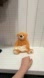 Adorable brown teddy bear holding a cream blanket. Perfect for cuddling. In condition as shown in photos. Took a video of how the bear does peekaboo.