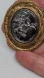 Unique oval brooch. Silver or pewter colour center depicts a winged horse, with rider and is set into a gold tone setting.