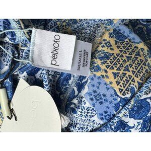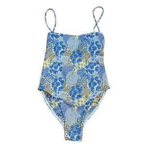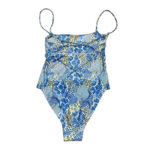 Peixoto Sz L Swimsuit Blue Floral Print Strappy One Piece Boho Preppy Beach