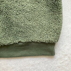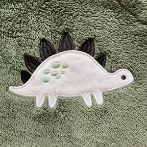 Pekkle baby sweatshirt, size 9 months. 100% polyester. Super soft olive green fuzzy fleece pullover with adorable embroidered dinosaur, ribbed cuffs and hem.