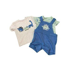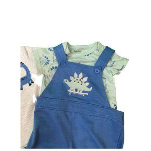 Pekkle Baby Toddler 3-Piece Outfit Set | Dinosaur Overall Bodysuit & T-Shirt