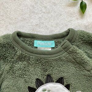 Pekkle Dinosaur Baby Sweatshirt 9M | Olive Green Fuzzy Pullover VGUC