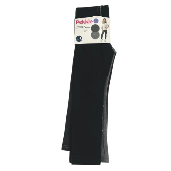 Pekkle | Girl's Leggings | 3 Pack | Black & Grey | Size 4