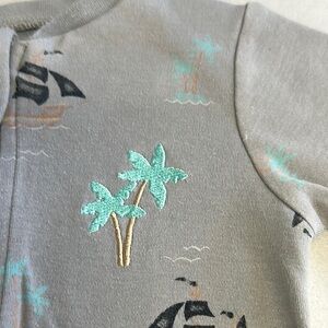 Pekkle - Gray organic cotton onesie sleeper with pirate ships/embroidered palm