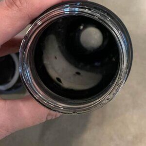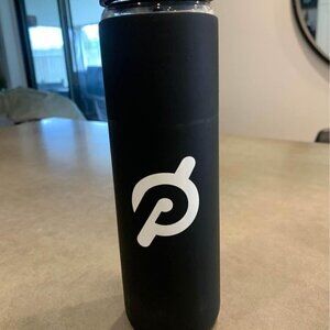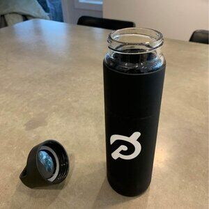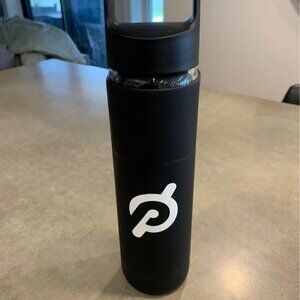 Peleton glass water bottle with rubber casing. New condition. Black and white