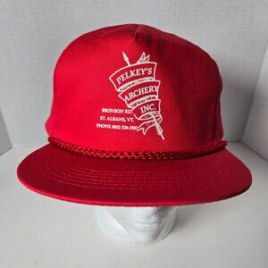 Bright red, Snap back, one size fits all. Excellent condition, no stains. Looks like it was never worn.