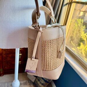 Pelletteria Veneta Light Tan Leather and Raffia Small Bucket Bag