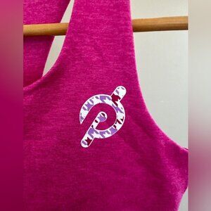Stay stylish and supported with this Peloton heathered pink sports bra featuring a flattering strappy back design. Perfect for spin, yoga, gym sessions, or everyday athleisure wear.