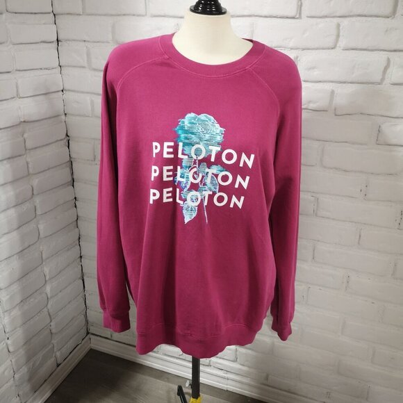 Peloton Ladies Size Large Terry Lined Dark Rose Made in USA Sweat Shirt