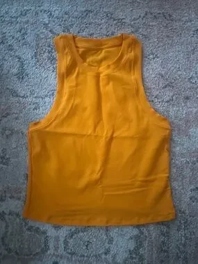 Sleeveless ribbed tank with a close fit. Soft knit fabric for comfort. Simple crew neckline. Easy to layer or wear alone. Like new condition- never worn!