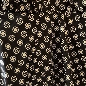 Penbrooke triple tier one piece swim suit. black with white and grey dots containing a geometric design. Lightly lined cups, adjustable straps that are attached at the back with metal rings (sewn on the front). size 24W. NWT.