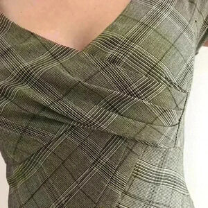 Slim fit, V neck décolleté with bust wrap design. Flattering diagonal gathering on bodice. It has a back slit and hidden zipper back closure.