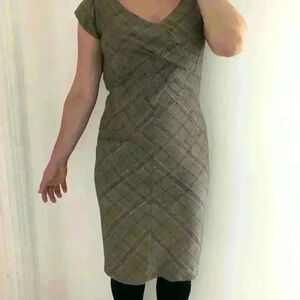 Tweed plaid subtle pattern fabric in tan and brown tones.