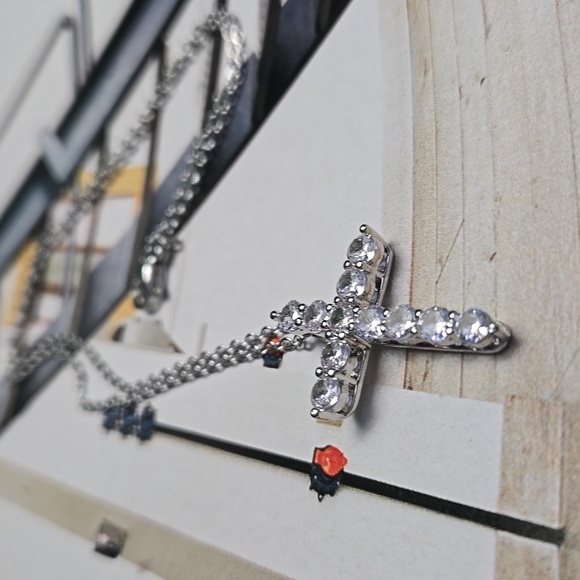 Cross diamond moissanite pendant Necklace party wedding choker statement Necklace women fashion jewelry. the chain is 16.5 ins. weight 5g