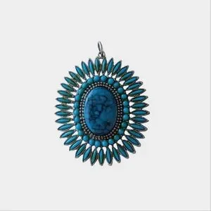 I'm selling a lovely man-made greeny/turquoise and silver coloured pendant, set in a base metal. Would look great on a silver chain or on a silver or black leather rope.