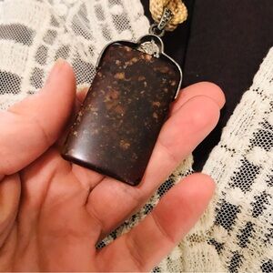 Resort‑ready boho pendant necklace with a neutral light camel rope‑style chain and an Aztec‑inspired metal pendant. In excellent pre‑loved condition.