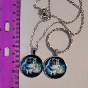 This pendant and key chain combo has a matching photo of a kitten on each one.. It comes with a chain that is approx 18 inches in length and made from a metal alloy.. These items are kept in a smoke free, pet free area. Thanks for stopping by and have a nice day..