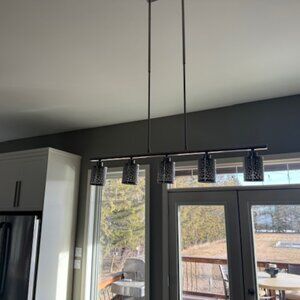 One set has long pendant lights and other set has shorter / smaller matching light fixtures. One was over my island and other about 15 feet away in a dining area. Like new condition. Beautiful lights.