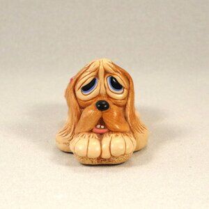 This little figurine is "Pooch", a sweet little dog with blue eyes and a red banket made in England by PenDelfin Studios. It is handcrafted and hand painted stoneware produced in 1960.