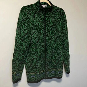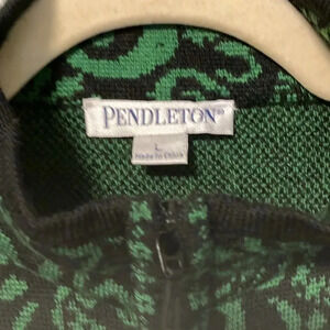 Pendleton 100% merino wool green black full zip cardigan