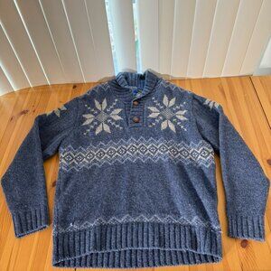Pendleton Men's 100% Shetland Wool Blue Shawl Collar Snowflake Holiday Nordic L