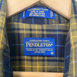 Elevate your wardrobe with this Pendleton plaid shirt. Features a striking navy and mustard pattern. Ideal for casual outings.