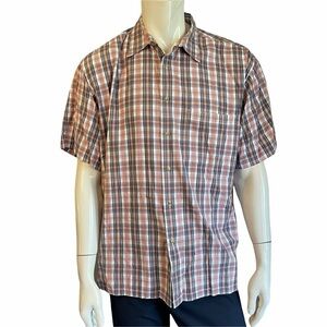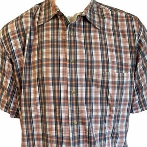Pendleton Woolen Mills Orange Blue Plaid Casual Button Front Short Sleeve Cotton Blend Dress Shirt in Size in XL