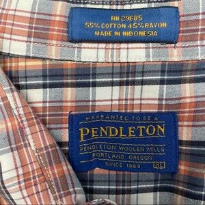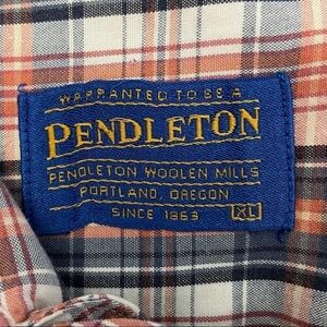 Pendleton Orange Blue Plaid Casual Button Shirt