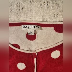Stylish red and white polka dot reversible sweater by Pendleton Plus. Come with tank for the complete sweater set. 100% cotton. Size 3X. Perfect for any occasion. In great condition.