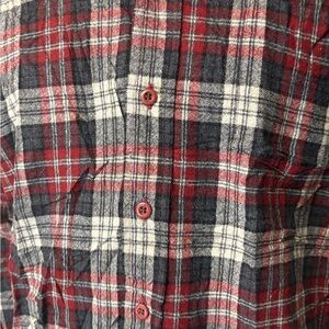 Classic plaid design. Button-up front. Long sleeves. Comfortable fit. Vintage.