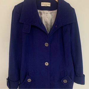 Pendleton Vintage Wool Coat Single-Breasted Button Outerwear Blue Size 10 Petite