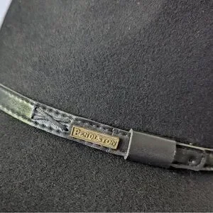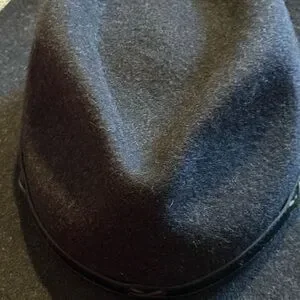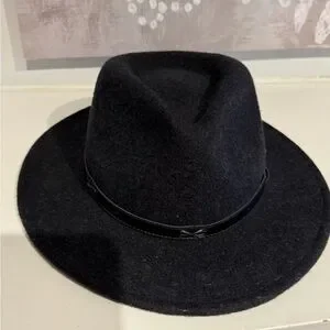 Elegant black fedora hat with a sleek design. Perfect for any occasion. Size medium in new condition. Made with 100% pure wool.