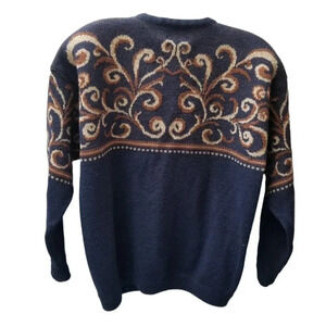 Pendleton Wool Navy Tan Brown Swirl Print Button Up Cardigan L