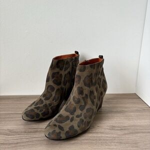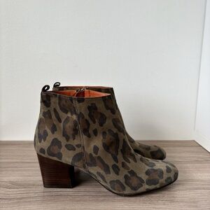 Penelope Chilvers Boots Havana Khaki Leopard Suede Zipped Ankle Boots 41 / 11 US