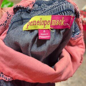 Penelope Mack Girls Sundress • Sz 4 • Denim Blue Skirt & Pink Lace Top • Holiday