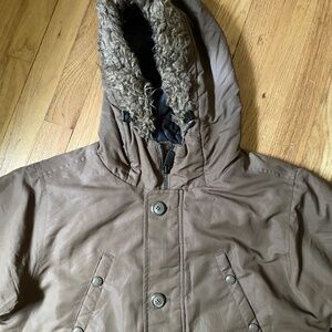 This is a weird one --- purchased on eBay but the sizing didn't work for me. Still a beautiful olive down parka in fantastic vintage condition (minus the fake fur trim, obviously). This must have been made for the Asian market so I can't read the tags, but generally Penfield makes really high-quality down winter clothing. Button and zip closure, patch pockets, hand warmer pockets, waist drawstring, hood drawstring, ribbed cuffs.