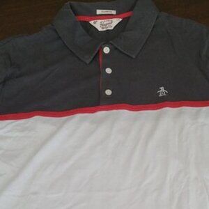 Penguin Oringinal by Munsingwear Polo Men's Large White Gray Red Classic Fit 100% Cotton