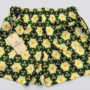 Peninsula Floral Print Swim Trunks Green / Yellow ( S )