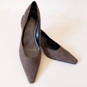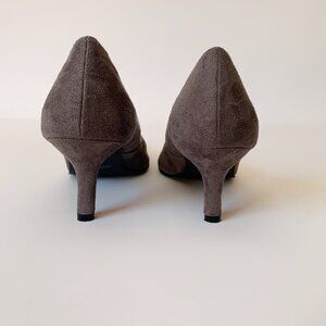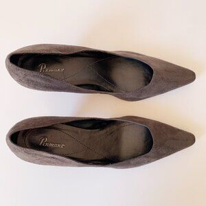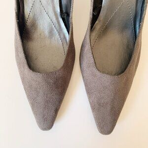 Penmans Grey/Taupe Suede Pointed Toe Kitten Heel Pumps | US 9