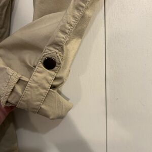 Convert to capris with snap buttons at the knees.