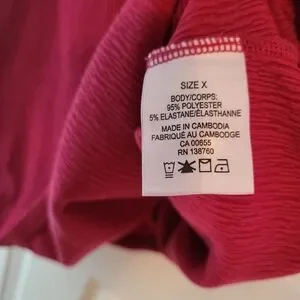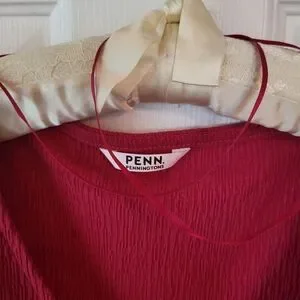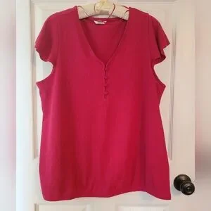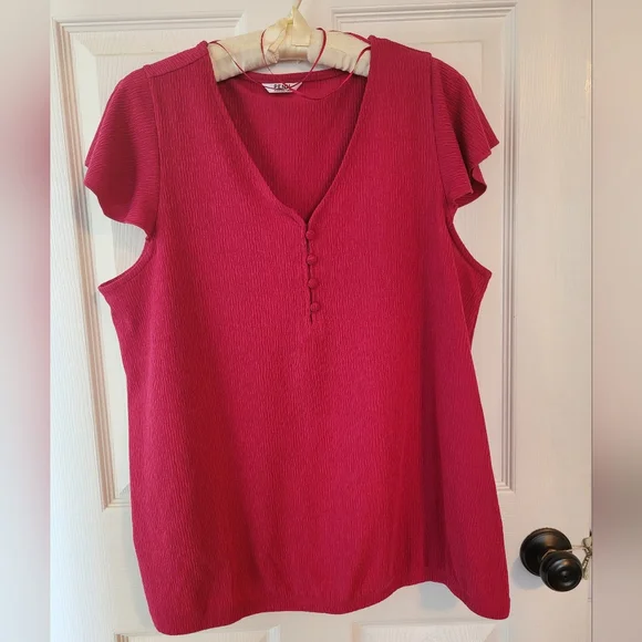 This is a pretty dark pink Penningtons top. It is size x. V-Neck Knit Top with Bubble Hem and Flutter Sleeves. I bought it at Penn and wore it once.