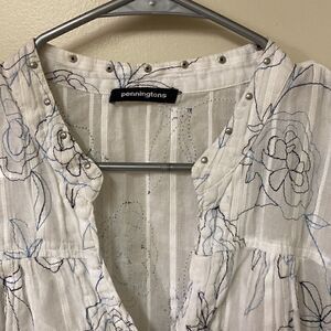 Penningtons, 100% cotton short sleeve with flower embellishments there’s embellishments around the sleeve the collar. Beautiful