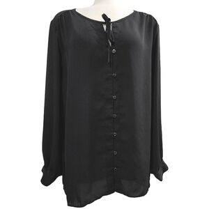 This Penningtons black button-down blouse is size 3X, featuring a flattering fit and classic button details. Ideal for both casual and formal occasions. Only worn twice, maintains like-new condition.