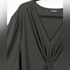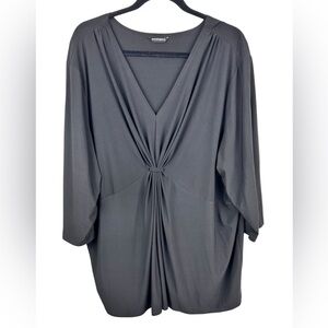 Penningtons 5X black tunic blouse, gathered front detail, draping, vneck Elegant