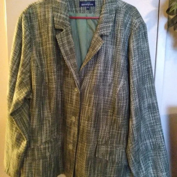 Pennington's Olive/Beige Woven Blazer/Faux pockets and Crystalline buttons, Olive Green lining, Size 26, Brand New never worn, great for office or evening out