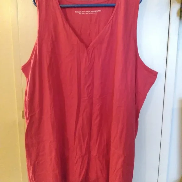 Pennington's Relaxed fit T-Shirt with V-neck and side slits, Red, Size 5X, 100% Cotton Brand New never Worn