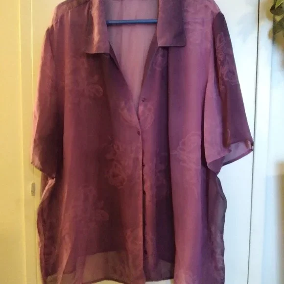 Pennington's Sheer Blouse with short sleeves and beautiful floral print, Color Mauve, Size 5X