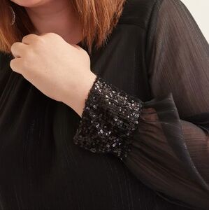 Penningtons Black Long Sleeve Sheer Blouse Top Metallic Sequins Sequined 5X